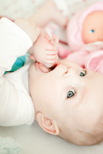 Ponieważ rosnę i rozwijam się w tempie błyskawicy, zaczyna mnie interesować prawie wszystko naokoło, więc rodzice sukcesywnie powiększają moją przestrzeń życiową. Parę dni temu tatuś podarował mi "podłogowy alfabet". Choć nie znam jeszcze literek nie przeszkadza mi to wykorzystywać podarunek jako doskonałe miejsce do zabawy, a także do robienia przewrotów na brzuszek, które niedawno opanowałam do perfekcji.